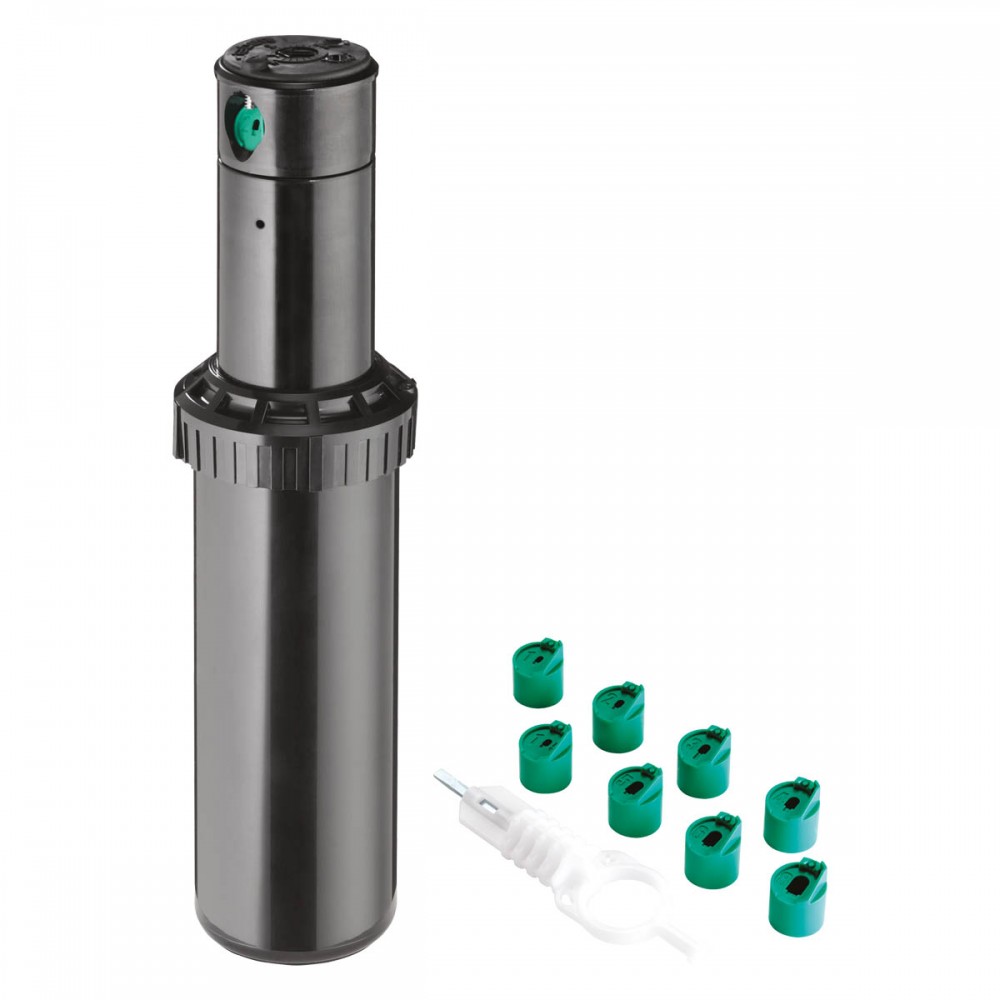 Pazemes laistīšanas turbīnas tipa sprausla ar regulējamu darbības leņķi robežās no 40° līdz 360°. Darbības laikā virs zemes paceļas 12,5cm augstumā. Darbības attālums (strūklas rādiuss) un ūdens patēriņš atkarībā no uzstādītās sprauslas izmēra un darba spiediena (skat.tabulu). Attālums strap divām sprauslām norādīts tabulā. Komplektā 8 izmēru izplūdes sprauslas un regulācijas atslēdziņa. Maksimālais laistīšanas laukums 670 m².