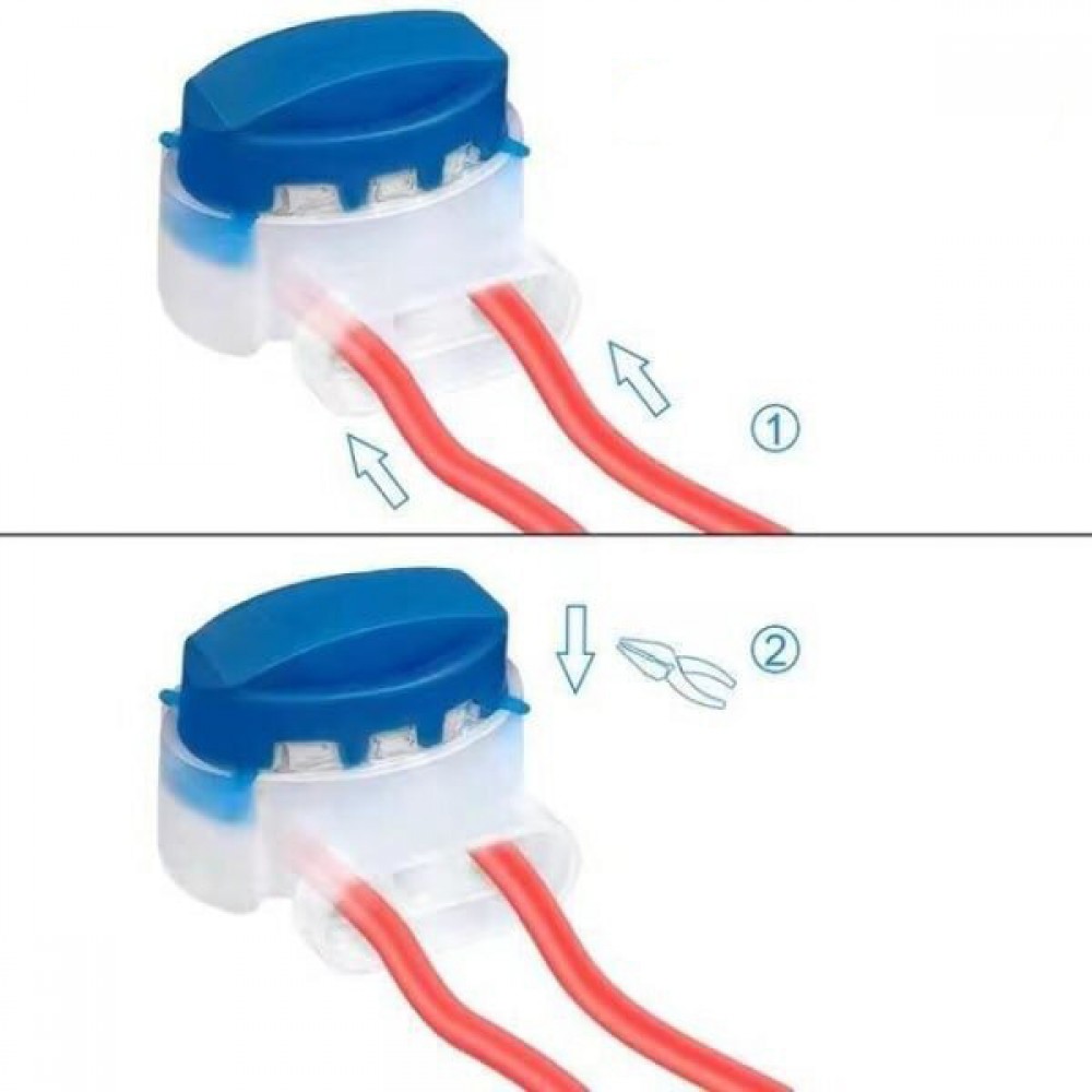 - Vienkārša uzstādīšana: Savienotājs ir ātri un ērti lietojams. Aizveriet vāciņu, ar knaiblēm nospiediet zilo vāciņu, līdz tas nofiksējas, lai izveidotu drošu savienojumu.