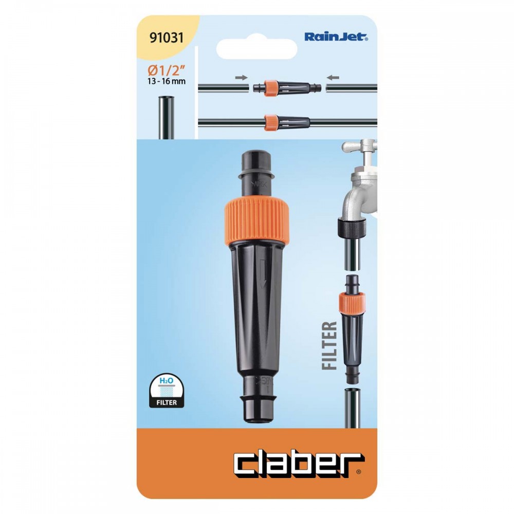 Claber in-line filtrs ir paredzēts, lai aizturētu sīkas ūdens piemaisījumus, kas varētu aizsērēt pilinātājus un smidzinātājus apūdeņošanas sistēmās. Tas darbojas pavisam vienkārši: