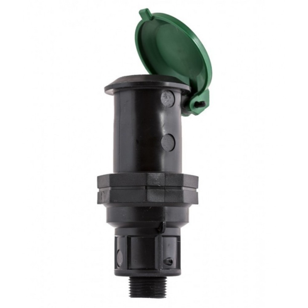 - Estētisks dizains: Zaļais vāciņš padara hidrantu gandrīz neredzamu mauriņā, netraucējot zāles pļaušanai.