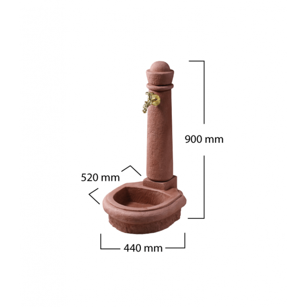 Pilārā izvietots ūdens ņemšanas ventilis. Ērts veids, kā dārzā pievadīt ūdeni. Pilāra materiāls- plastmasa, krāsa - sarkans granīts. Pievienošanās vītne 3/4"(ā