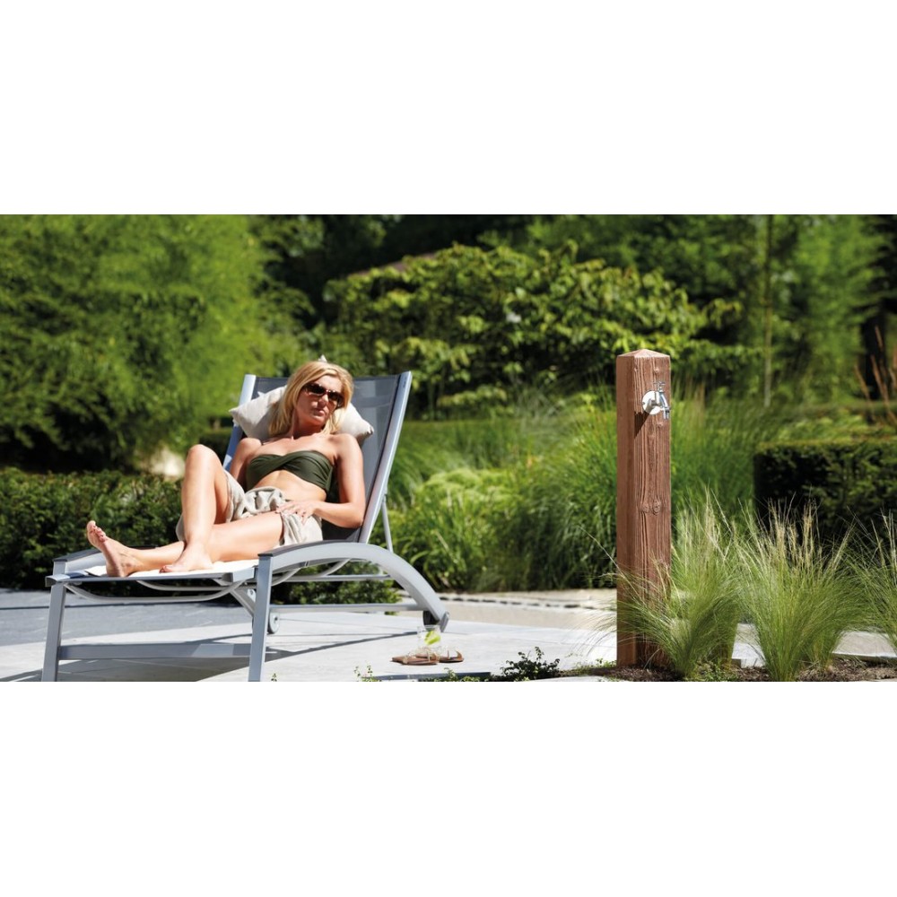 Pilārā izvietots ūdens ņemšanas ventilis. Ērts veids, kā dārzā pievadīt ūdeni. Pilāra materiāls- plastmasa, krāsa - tumšs koks. Pievienošanās vītne 3/4"(ā).