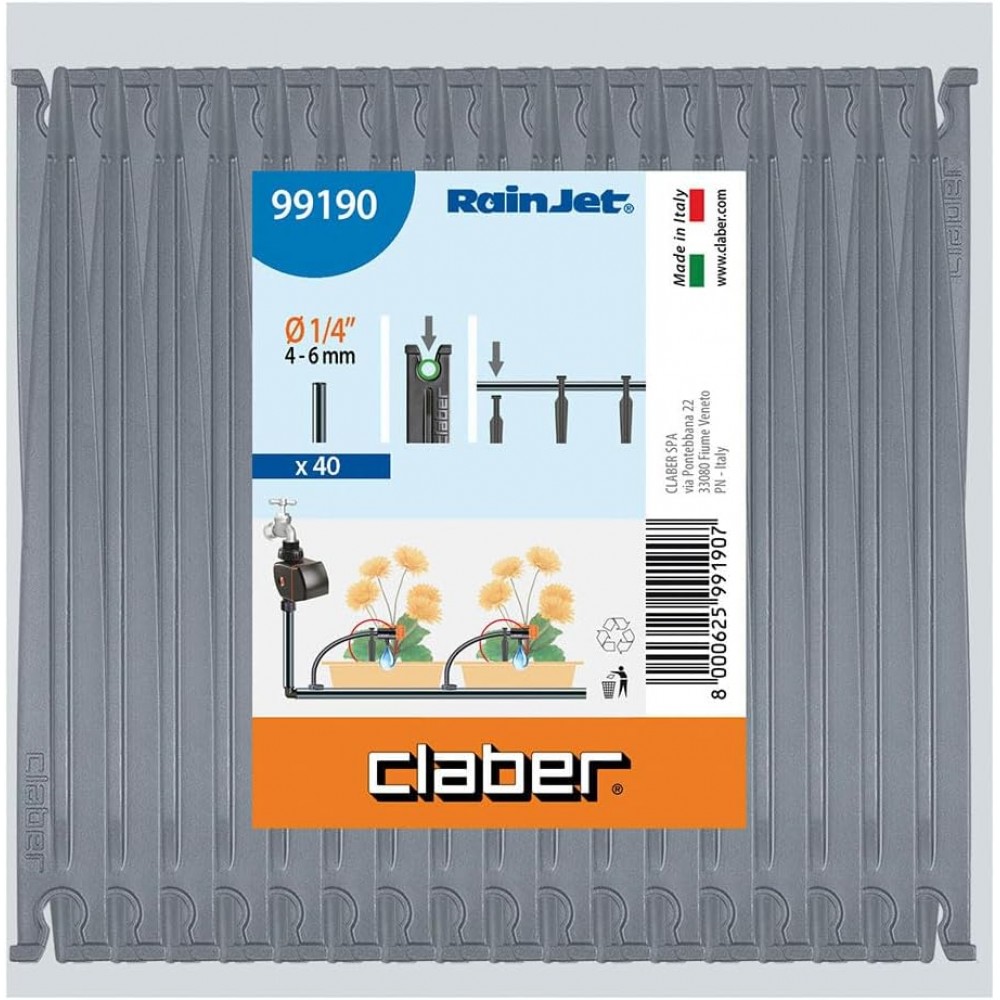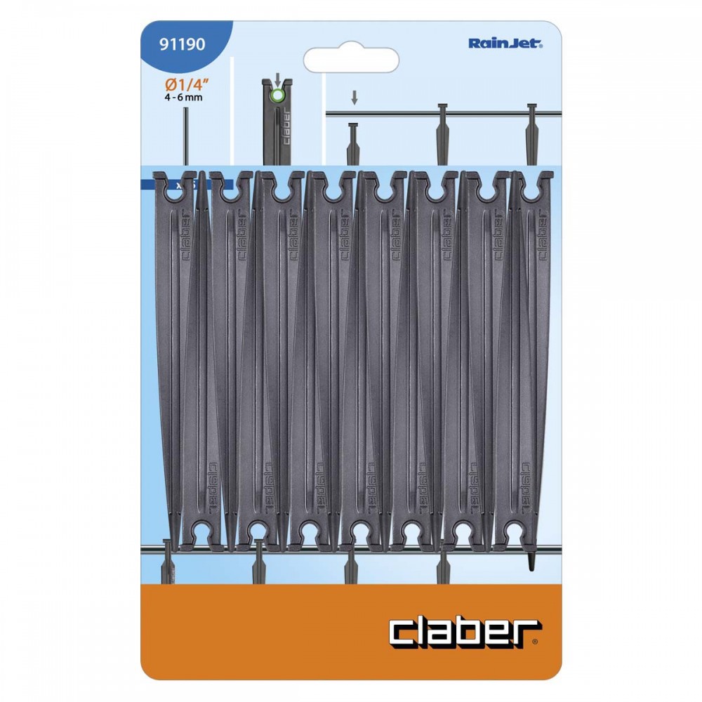 Claber cauruļu (1/4") balsta spraudnis ir neliels, bet noderīgs aksesuārs jūsu pilienveida apūdeņošanas sistēmai. Tā galvenā funkcija ir noturēt 1/4" (4-6 mm) padeves caurules un gala pilinātājus vietā, lai tie būtu stabili un precīzi apūdeņotu jūsu augus.