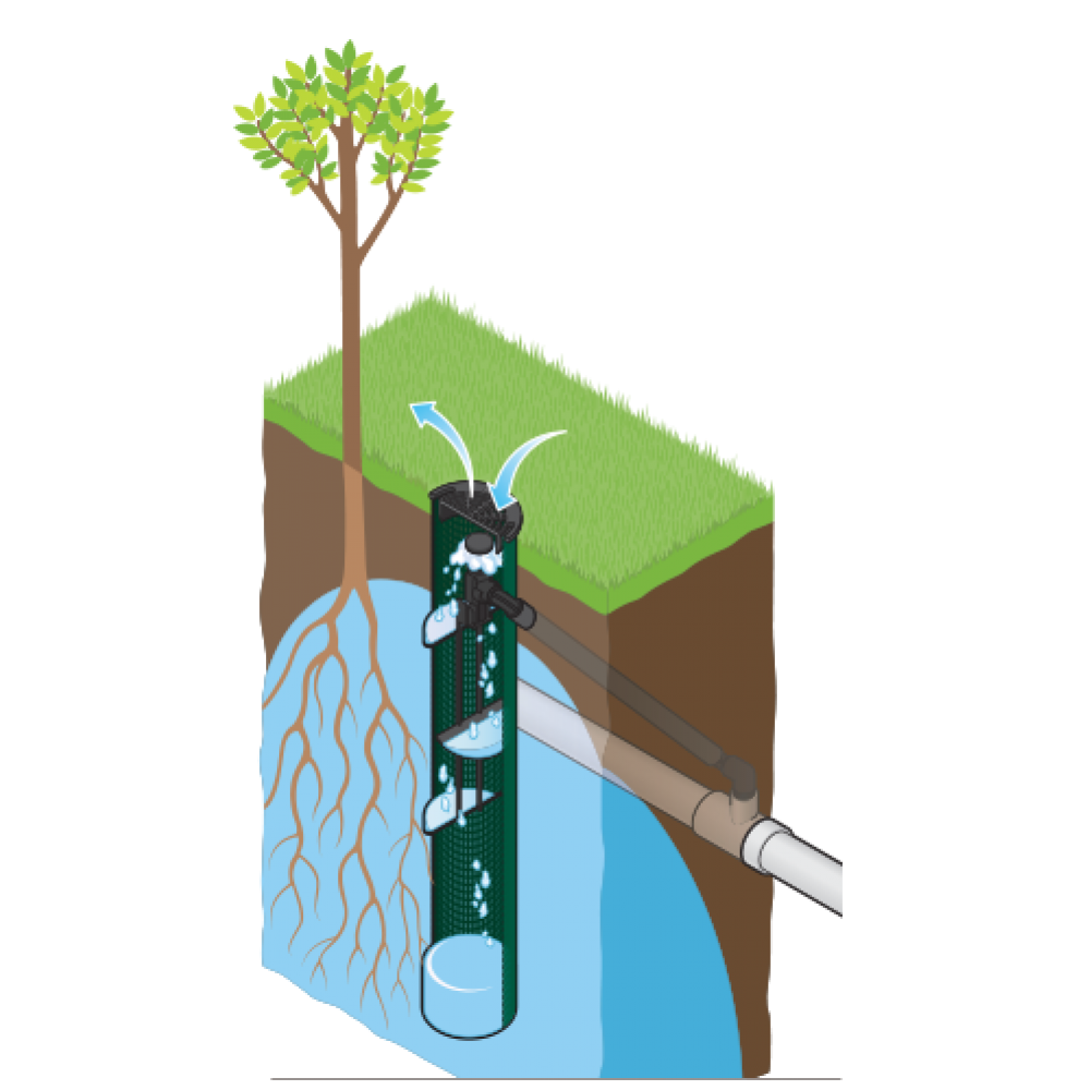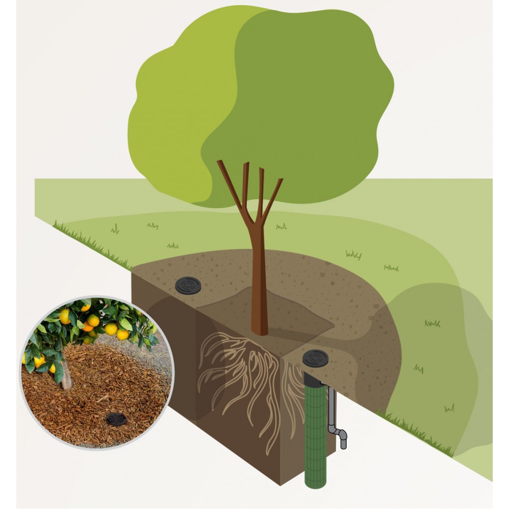 Lai jauni augi un koki labi augtu, tiem ir jānodrošina pietiekama apūdeņošana un stabila skābekļa apmaiņa visos sakņu zonas līmeņos. Tas veicina sakņu augšanu dziļumā un drošu atrašanos zem zemes, ļaujot augiem kļūt spēcīgiem un pilnībā iesakņoties. Lai risinātu šo problēmu, ir izstrādāta Sakņu Zonas Laistīšanas Sistēma (Root Zone Watering System), kas aprīkota ar Hunter patentēto StrataRoot Baffle System, iekšējo deflektoru sēriju, kas novirza ūdeni, skābekli un barības vielas uz sakņu zonu un nodrošina apūdeņošanas cilindra stingrību papildu izturībai. RZWS tiek piegādāts jau samontēts ērtai uzstādīšanai, un slēgtais dizains un režģis aizsargā apūdeņošanas aparatūru no vandālisma. Lai nodrošinātu efektīvu koku un krūmu apūdeņošanu visā sakņu zonā, RZWS ir optimāls risinājums.