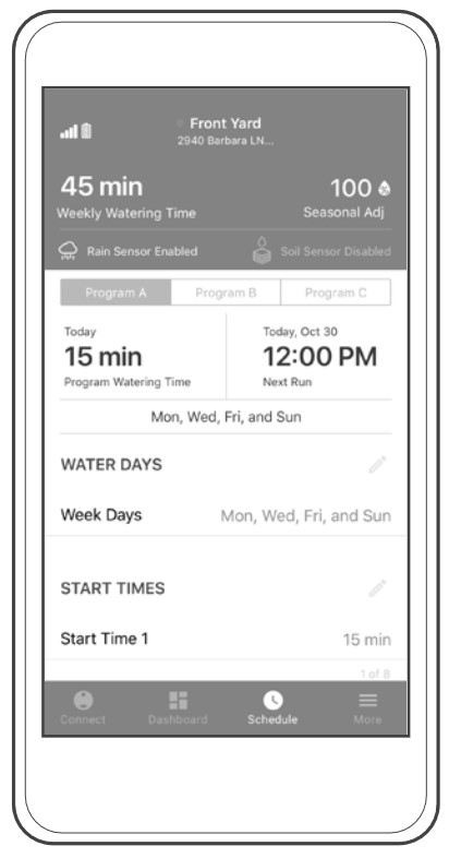 Pats labākais, ka NODE-BT padara ar baterijām darbināmu laitīšanu ērtu. Pilnīga bezvadu Bluetooth® lietotņu kontrole novērš nepieciešamību atvērt netīrās vārstu kastes un programmēt laistīšanas grafikus tumšā ekrānā. Kā arī ir iespējams ieslēgt laistīšanu un pārbaudīt akumulatora stāvokli tieši uz kontrollera, nospiežot pogu, tādējādi ievērojami paātrinot apkopi.